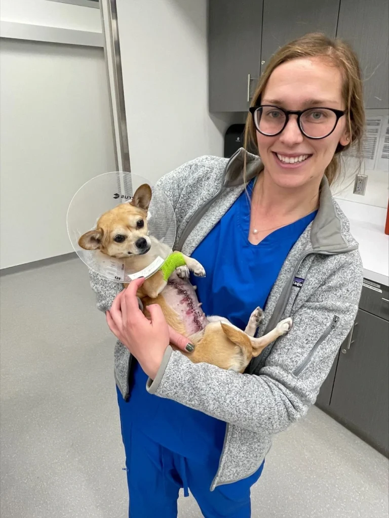 Chiquita, a small but mighty Chihuahua, captured hearts when she recently came through the doors of our new Veterinary Hospital at CSU Spur. Just days before, Chiquita was adopted by Jazmin and her two little boys. It didn’t take long for Jazmin to notice a mass under the pup’s right front leg, and, following a friend’s recommendation, she made an appointment for Chiquita at CSU Spur. [Humane Colorado] veterinarians quickly determined Chiquita had not one but three mammary gland masses that needed to be surgically removed. These growths develop more frequently in adult dogs who are either intact (like Chiquita) or spayed later in life. To prevent future pregnancy, pet overpopulation, and further health complications, Chiquita’s mass removal procedure would also need to include a spay. Dr. Rize, a veterinary intern completing her first year of practice at CSU Spur, was the attending doctor for Chiquita’s case. With Spanish translation assistance from one of our bilingual team members, she met with Chiquita’s family and thoughtfully explained her condition. A few days later, Dr. Rize performed Chiquita’s chain mastectomy and spay surgery “on-view” and submitted the tissue from her masses for histopathology testing. To the relief of all involved, there was good news to share. Chiquita’s masses were benign, and her prognosis was excellent. She is now healthy and surrounded by the love of her wonderful family – largely thanks to the support we receive from PetSmart Charities. Share Facebook TikTok Instagram