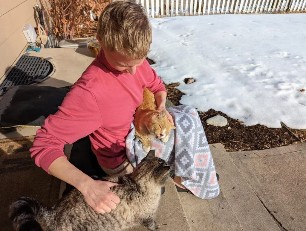 One day in February, Mieke brought a vulnerable, ginger tabby named Ramen to our doors at CSU Spur. Ramen – a 7-year-old stray cat, who for years had endeared himself to Mieke’s crew of caring neighbors – was suffering from severe dental disease and a painful skin infection. Over time, each neighbor had bonded with Ramen, offering him affection, shelter, and a dependable meal whenever he dropped by to say hello. When Mieke and her husband moved to the neighborhood near the end of 2022, they, too, took a shine to this friendly outdoor cat in their new neighborhood. By the time Mieke first met Ramen, he was already in very bad shape. Remarkably, her neighbors were in the process of pooling their resources to find him treatment – a collective effort that Mieke and her husband wholeheartedly supported. Before moving to Denver, Mieke volunteered at an animal shelter in Texas, where she took a particular interest in cats and their care. Ramen’s group of caregivers visited several local veterinarians but felt discouraged when they were unable to afford the recommended dental surgery and other treatment he needed to recover. That’s when they heard about Humane Colorado’s services at our Veterinary Hospital at CSU Spur. “I cried with relief at that first appointment at Humane Colorado,” remembers Mieke. “It was the first time I felt that Ramen – and us as his family – were being truly seen and cared for.” At CSU Spur, Ramen’s donor-subsidized treatment included a major dental procedure to extract all of his teeth, a neuter procedure, a long-awaited skin allergy diagnosis, and vaccinations to further improve his health and well-being. Each of these healing measures was made possible by a community that deeply cares for Ramen – including all of us at Humane Colorado. Everybody who meets Ramen loves him – especially Mieke and her husband. In fact, Ramen now officially resides in their home, enjoying the warmth and comfort of knowing where his next nibble and snuggle will come from. However, he still gets to roam the great outdoors and visit members of his extended family. “Ramen is no longer surviving each day,” Mieke said. “He’s thriving. Share Facebook TikTok Instagram