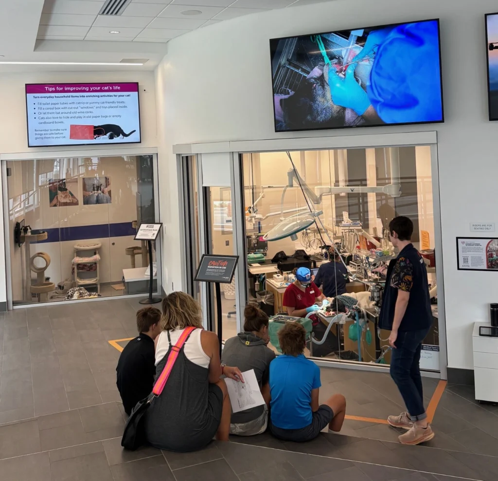Most procedures are performed in our on-view surgical suites located on the Colorado State University Spur campus in Denver, where visitors and students can observe live surgeries.
