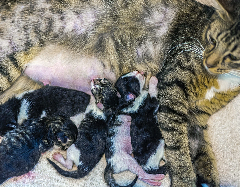 Well-socialized cats are more likely to have well-socialized kittens. Kittens “feed” off of their mothers’ calm or fearful attitude toward people. Although feeding time is important, it’s also vital to include petting, talking, and playing in order to build good “people-skills” in your kitten. Kittens are usually weaned at six or seven weeks but may continue to suckle for comfort as their mother gradually leaves them more and more. Orphaned kittens, or those weaned too soon, are more likely to exhibit in inappropriate suckling behaviors later in life. Ideally, kittens should stay with their littermates (or other role-model cats) for at least 12 weeks. Kittens orphaned or separated from their mother and/or littermates too early often fail to develop appropriate “social skills,” such as learning how to send and receive signals, what an “inhibited bite” means, how far to go in play-wrestling, and so forth. Play is important for kittens because it increases their physical coordination, social skills, and learning limits. By interacting with their mother and littermates, kittens learn “how to be a cat.” Kittens that are handled 15 to 40 minutes a day during the first seven weeks are more likely to develop larger brains. They’re more exploratory, more playful, and are better learners. Skills not acquired during the first eight weeks may be lost forever. While these stages are important and fairly consistent, a cat’s mind remains receptive to new experiences and lessons well beyond kitten-hood. Most cats are still kittens, in mind and body, through the first two years. Skip Newborn kittens 0-2 weeks old Newborn kittens have closed eyes and folded ears. The kittens cannot stand or walk but are learning to orient towards sound. Mom is usually present with newborns, nursing and caring for her litter diligently, but may leave them for a few hours at a time. Separation from their mother and littermates at this point can lead to poor learning skills and aggression towards people and other pets, including other cats. Kittens 3-5 weeks old The kittens’ eyes are open and blue, and the ears unfolded. By the third week, their sense of smell is well developed. They begin to interact with their littermates. Mom slowly decreases her time with the litter, encouraging her kittens to be independent. By the fifth week, sight is fully developed, they can right themselves, run, place their feet precisely, avoid obstacles, stalk, pounce, and catch “prey” with their eyes. Kittens 6-8 weeks old Kittens begin to develop adult sleeping patterns, motor abilities, and social interactions. They begin to groom themselves and their littermates. Most learning is by observation, preferably from their mother. The kittens are weaning. Skip 9-14 Weeks Social and object play increases their physical coordination and social skills. Social play includes belly-ups, hugging, ambushing, and licking. Object play includes scooping, tossing, pawing, mouthing, and holding. Socia/object play includes tail chasing, pouncing, leaping, and dancing. Kittens 3-6 months old By 6 months, kittens will be fully grown and completely independent from their mom. Most influenced by their “litter”. Playmates now include companions of other species. While not impossible, feral kittens at this stage are unlikely to socialize to humans. To help with overpopulation and reduce the spread of disease, it is important to consider Trap-Neuter-Return (TNR). Kittens 6-18 months old Kittens at this stage have heightened exploration of assertion. If they are not spayed or neutered, kittens at this stage will begin sexual behavior. Based on what we know of feral cat behavior, these kittens are unlikely candidates for socialization and adoption. Skip Learn More About the MetroCat Street Team Adopting an Under Socialized Cat Humane Colorado Spay/Neuter Clinics Humane Colorado Vaccine Clinics Solving Litter Box Problems The Fearful Cat Share Facebook TikTok Instagram